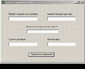 - По щелчку мышью на кнопке «Подсчитать эквивалент» выводится денежная сумма в евро и долларах.