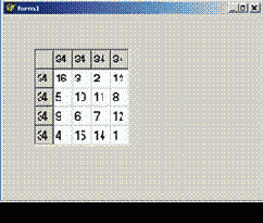 В данной программе используется свойство Cells, компонента сетки. Это свойство имеет тип двумерного массива строк. Счет в этом массиве начинается с нуля. Фиксированные (серые) клетки, с точки зрения индексирования массива, ничем не отличаются от прочих. В нашем случае фиксированы первая строка и первый столбец (в массиве они имеют соответствующие нулевые координаты). Поэтому при расчете суммы проходят от 1 (а не от 0) до Num – 1 (при индексировании с нуля последний столбец/строка имеют, понятно, номер Num – 1).